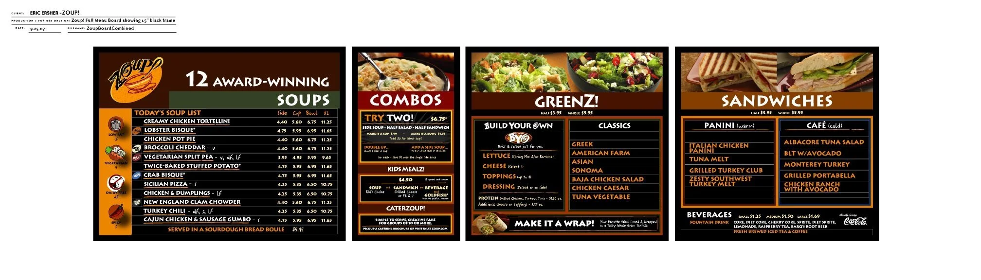 When Zoup! launched their inaugural store in Southfield, Michigan, I was entrusted with the responsibility of crafting their logo and developing a comprehensive branding strategy. This encompassed designing all franchise materials, as well as both interior and exterior signage, ensuring a cohesive representation of the Zoup! brand.